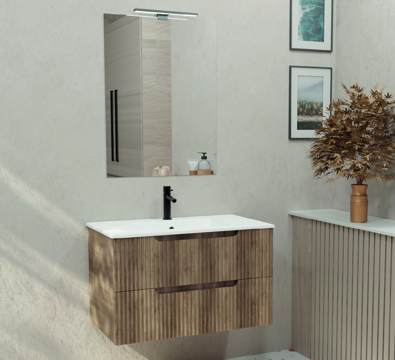 Tiroirs en MDF(1) ondulé, poignées intégrées (ep. 18mm)
