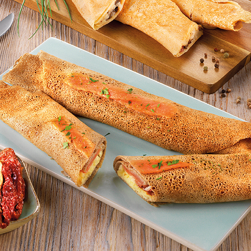 • À la Bretonne : saumon fumé, fromage frais, fleur de sel de Guérande sur mini-galette au sarrasin,