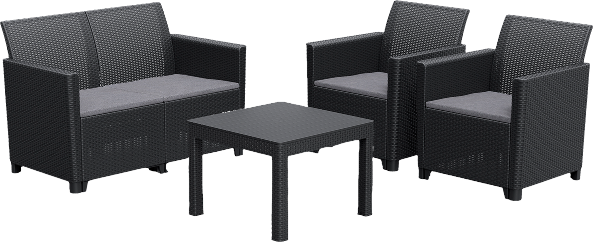 - 2 fauteuils avec coussin d'assise de 2 cm. Dim. : L. 63 x P. 65 x H. 74 cm.