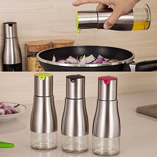 Lot de 3, l'innovation réglable bouteille d'huile, maintenez le vent de l'huile, huile de précision. Fait de qualité alimentaire sans plomb en verre, en acier inoxydable, polypropylène.saine et facile à nettoyer. Design moderne, bec verseur travail facile et les maintient à un minimum, vous pouvez tourner 180 ° pour cacher le bec à intérieur pour poussière et insect-proof après utilisation. Bouteilles amovible facile à ouvrir et à nettoyer. Un look élégant pour servir huiles et Vinaigres. Dimensions globales?: 7 x 18,5 cm Contenance?: 320 ml.