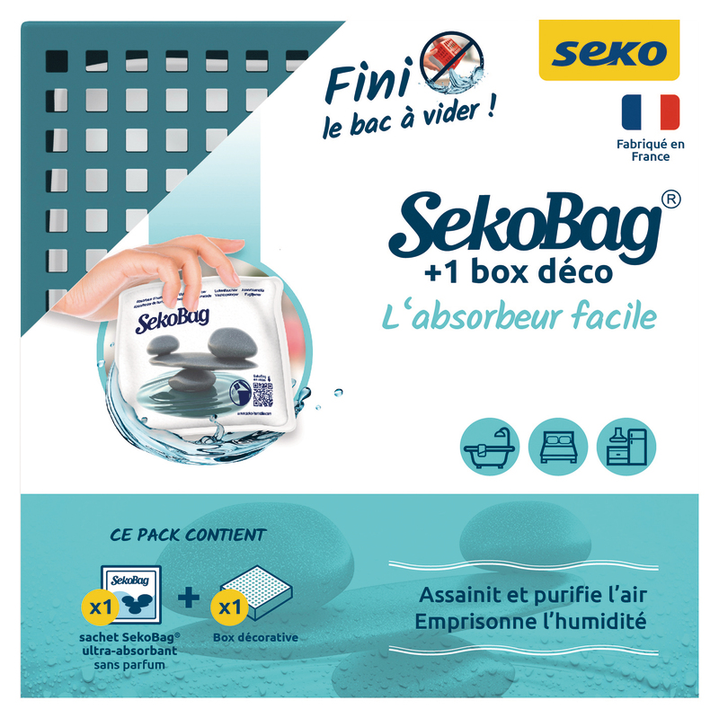 1 absorbeur Sekobag de 150 gr + box blanche 1 absorbeur Sekobag de 150 gr + box bleu 1 pack promo de 4 absorbeurs Sekobag de 150gr + 2 gratuitsDU 3 AU 15 DÉCEMBRE
