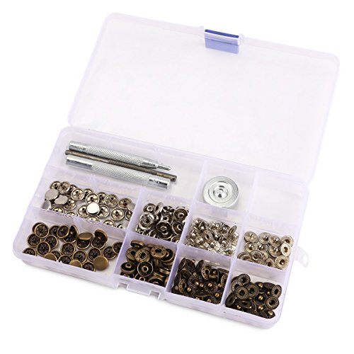 Diamètre du bouton: 10mm Bouton argenté: 25 sets (1 set comprend 4 parties) Bouton bronzé: 25 sets Outil à fixer 1 set Utilsé pour cuir maroquinerie, vêtement, sac, chaussure etc