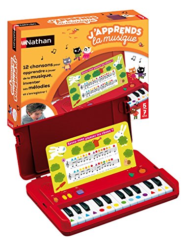Pas besoin de connaître le solfège Le piano guide l'enfant et le félicite pour bien jouer Contenu : 1 petit piano électronique, 12 partitions Fonctionne avec 3 piles LR6 Age : 5 ans et plus