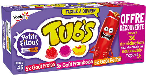 YOPLAIT PETITS FILOUS TUB'S FRAISE, FRAMBOISE, PÊCHE dans les catalogues