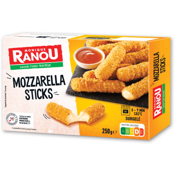 MONIQUE , identifié par le code barre EAN 3250393437588. Acheter RANOU MOZZARELLA STICKS + SAUCE SURGELÉS