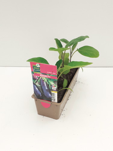 Plusieurs variétés au choix : Aubergine Avan, Courgette Tarmino, Concombre Gynial, Poivron doux Sonar, Piment doux long des Landes, Piment fort de Cayenne. La barquette de 3 mottes.