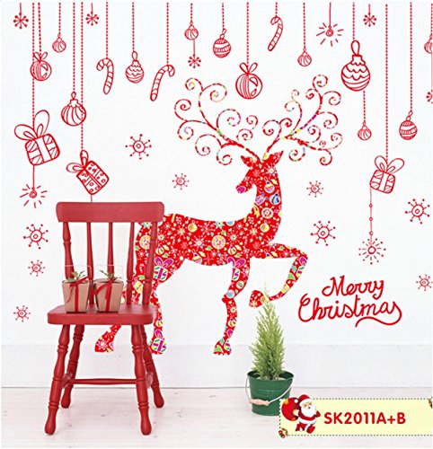 Fanessy "merry christmas" elk noël joyeux stickers mura... (EAN: B01M314Q09) Fanessy "merry christmas" elk noël joyeux stickers muraux fenêtre vitrine amovibles autocollants muraux rouge Livré en 1 feuille, taille de la feuille: 110cm x 112cm + 122cm x 112cm Matériau: PVC Amovible Dimension de l'effet: regardez les images ou DIY Recommander taille fini: 1.25m (W) x 1.45m (H), il peut également être ajustée en fonction de vos préférences Il peut rendre vos Chrismas plus chaud, la ... | Fanessy |