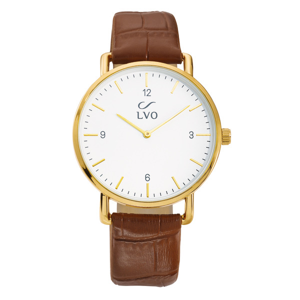 • 000000223345 Montre Lvo Homme Dorée Bracelet Cuir Marron