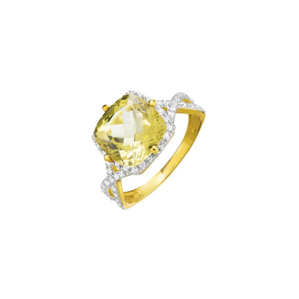 Bague Or 375 Millièmes Rhodié, Quartz Lemon* Et Oxydes De Zirconium code EAN 000000355709