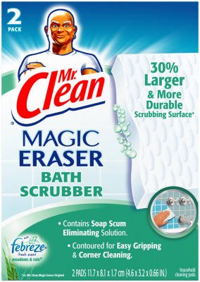 Larger and more durable than the original Magic Eraser?. Built-in soap-scum-dissolving cleanser. Slow-release micro-scrubbers. Fresh scent of Febreze? added in the eraser..