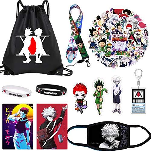 0096544689528 Coffret cadeau Hunter x Hunter : 50 autocollants chasseur, 1 poster chasseur x chasseur, 1 sac à cordon, 1 collier, 2 broches, 1 support pour anneau de téléphone, 1 cordon.,Sac avec cordon de serrage – Ce magnifique sac de grande capacité et à la mode. L'anneau de support pour téléphone Hunter X Hunter peut pivoter à 360 degrés et se plier à 180 degrés.,Poster Hunter x Hunter : 8. Parfait pour la maison, le bureau, ou comme cadeau.,Lot de 50 autocollants pour ordinateur portable - Jolies décorations pour ordinateur portable, bagages, skateboard, coque de téléphone, tasse, voiture, valise, livre, etc.,Conçu pour les fans : nous assemblons minutieusement ces cadeaux animés pour tous les fans de chasseurs et de chasseurs, qui peuvent être offerts comme cadeau à des filles, des garçons, des étudiants, des amis. Cadeau incroyable pour vos amis, votre famille, pour Noël, un anniversaire de mariage, Thanksgiving, la Saint-Valentin, un mariage, un anniversaire et le Nouvel An..