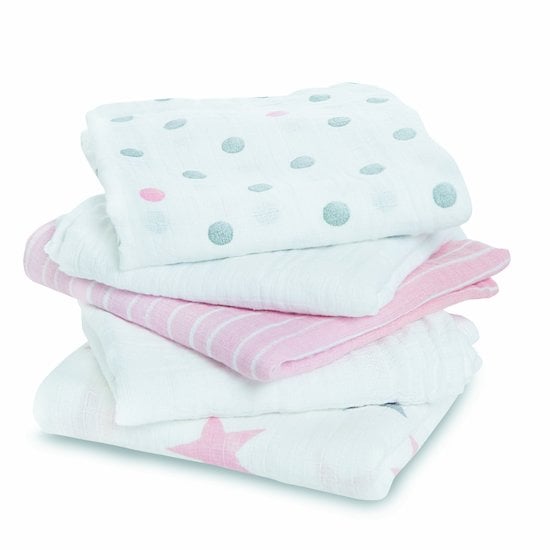 Aubert Lot de 4 langes 112x112 Dusty de aden + anais essentials