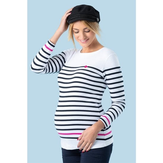 Marinière de grossesse Brest Blanc / Marine de Cache Coeur.