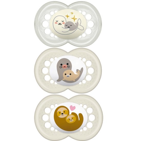 Aubert Lot de 2 sucettes animaux en silicone 18 mois + Aléatoire de Mam