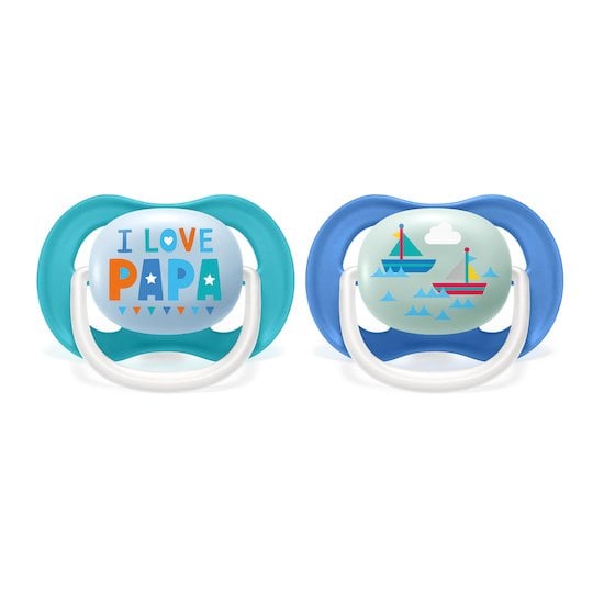 Lot 2 sucettes ultra air I love papa et bateaux 6-18 mois de Philips AVENT