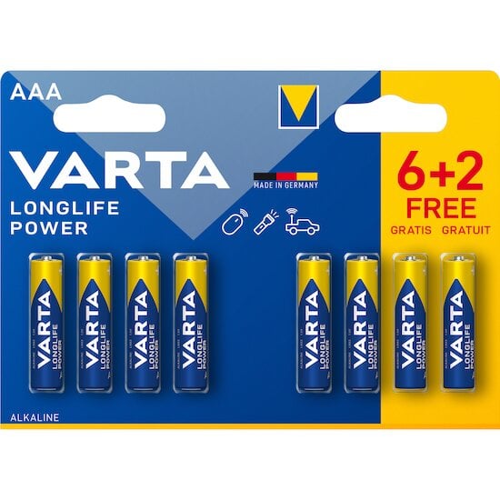 Piles Longlife Power AAA Blister 6+2 Gratuites de VARTA