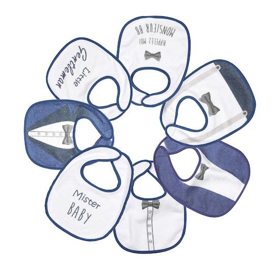Set 7 bavoirs Premier âge Gentleman de Trois Kilos Sept.