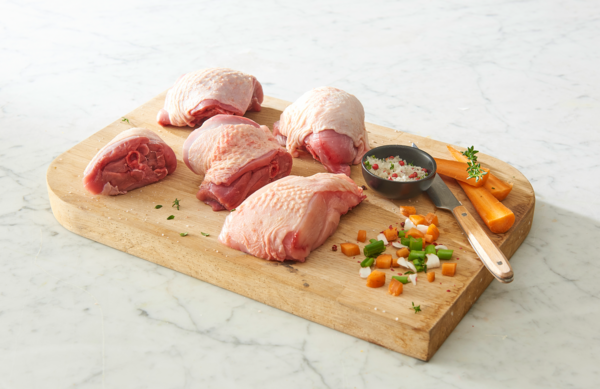 Leclerc Coq au riesling La portion de 300 g, soit 33 € le kg.