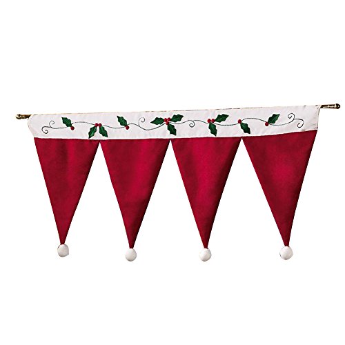 Cette adorable lit looks like a row upside down-bonnets de Père Noël. Fait de faux daim, it "s Bordure à pompons, appliques et broderies. Une excellente alternative aux lampes ou garland. Mesures 36 "W x 16" 3/4 L ". Rod pocket for hanging. Polyester-Nettoyage à l'aide d'un chiffon humide-importés.