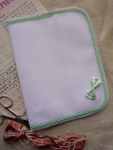 Un magnifique protège-carnet en toile aida 5,5 (blanche) prêt à broder Avec un nœud en ruban à positionner selon vos idées Doublé de feutrine, pratique pour cacher l'envers des fils et éviter la transparence de la toile (il est fixé au milieu mais s'enlève sur les côtés pour faciliter la broderie) Parfait pour un carnet de santé mais pourrait également être utilisé pour un petit journal ou un livre de recettes Existe aussi en blanc, bleu et rose - Fabrication française.