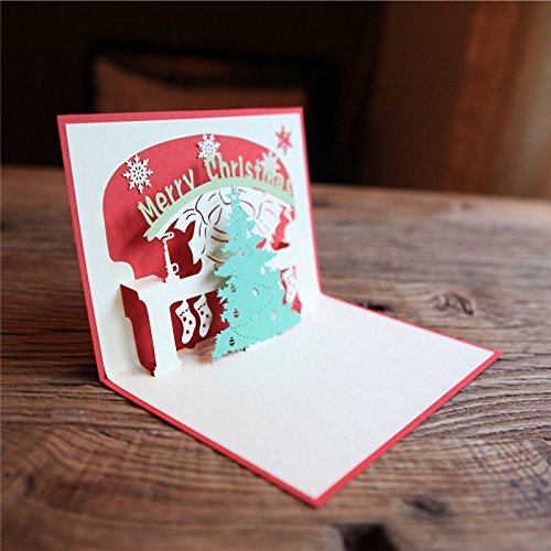 la carte est fabriquée à la main à partir de papier solide de haute qualité Fait de papier spécial, rétro, lisse et épais. Conception de l'apparition avec fantaisie , donne une grosse surprise à votre enfant, amant, ami. Vous pouvez écrire quelques mots dans le papier pour exprimer vos vœux Carte de Noël chaque carte est livrée avec une enveloppe blanche et emballée dans un film transparent. Idéal pour offrir.