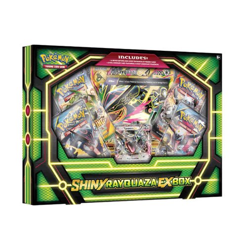 Coffret Pokemon SHINY RAYQUAZA EX Collection Box (4 boosters + promos) - Un de jeu inédite avec brillant rayquaza-ex..