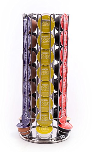 48 capsules Dolce Gusto Café Pod support pour support tournant - Massif 48 Dolce Gusto Pods Rotatif Distributeur Présentoir Solide base de rotation de 360 degrés avec avec une base anti-rayure Qualité Made finition Chrome Grande économiseur d'espace pour la cuisine haut avec un accès facile à tous vos capsules * S'il vous plaît noter achat ne comprennent pas les capsules * Sleek Fini Chrome, tout neuf dans la boîte fabricants. Hauteur 41cm Base Diamètre 18cm.