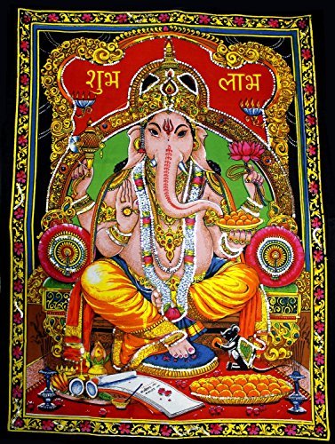 Déesse indienne Ganesh tissu en coton Taille: 30 x 43 pouces Dieu de la sagesse et de la richesse Fabriqué en Inde avec dévotion et d'amour