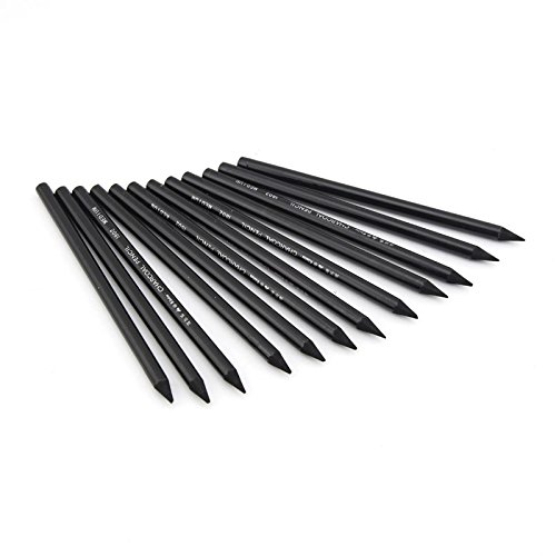 Owfeel(TM) Un lot de 12 professionnel Manga bois Crayons de Croquis Dessin Fusain Crayon sans bois noir, M ? Avant d'effectuer votre achat, Zounko