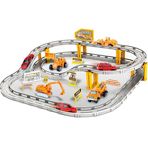 Matériel : certaines parties de la voiture sont fabriqués en alliage de Zinc, d'autres en plastique ABS.Dimensions de l'emballage : 50 * 5 * 35 cm Une pile AA nécessaires (non fournies). 43Pcs, comprend 2 camion jouets, 2 voitures de construction et quelques panneaux routiers et référence railyway ensembles de construction. Enfants peuvent construire le chemin de fer par eux-mêmes et aime jouer avec la voiture. Age 6 +, pièces de CHOKING HAZARD-Small. Faire attention quand les enfants jouer avec elle..