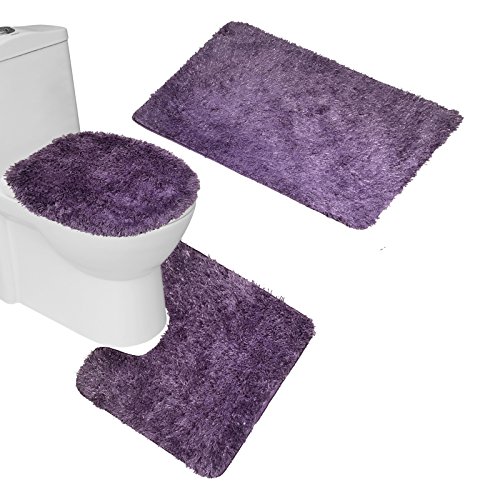 Acheter Bearbae bearbae 3 pièces (Grand tapis shaggy tapis de bain en microfibre douce + Tapis contour WC + Couvercle), Microfibre, Violet, 50*80cm , identifié par le code barre EAN 0714983928380. En vente moins cher en ligne