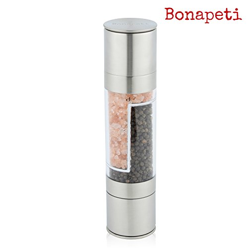 Bonapeti Moulin 2 en 1 à poivre et sel Bonapeti - Finition haut de gamme avec couvercle en céramique - Acier inoxydable brossé - Convient pour tout type d'épices - Garantie 1 an ? Avant d'effectuer votre achat, Zounko