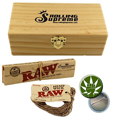 WOODEN BOX RS Coffret en bois S Haut 166 x 83 x 57 mm 3 compartiments avec compartiment secret feuilles Support + Papier à rouler RAW KS Connoisseur Tips + 4 m Hemp Wick + Fight 4 Legal Cravate Bouton 32 mm ? Avant d'effectuer votre achat, Zounko
