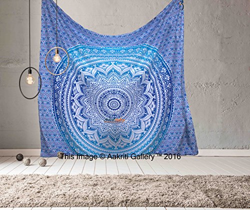 Aakriti Gallery Reine Tapisserie Hippie Bohème Tapisseries Mandala bleu Ombre Psychédélique complexes indien Couvre-lit 233,7 x 208,3 cm aakriti Galerie dans les catalogues