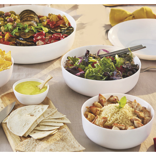 En verre opale. Existe aussi en : Assiette creuse 20 cm au prix de 1,50 €. Assiette dessert 19 cm au prix de 1,30 €. Saladier au prix de 4,50 €. Coloris granit ou turquoise.