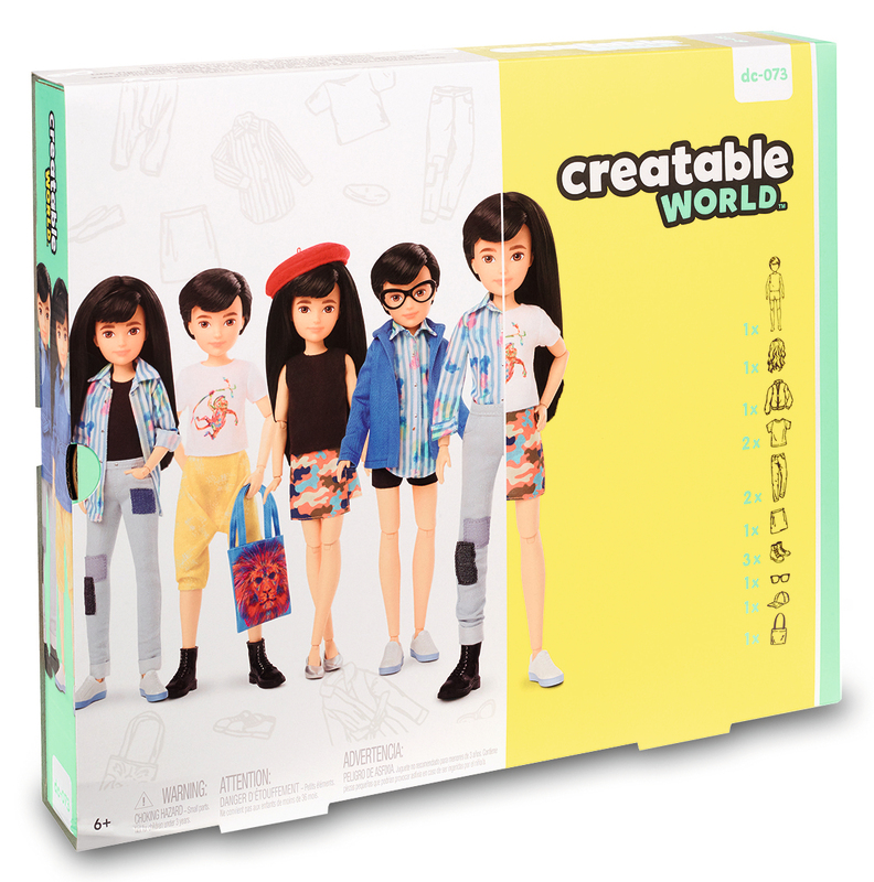 Le coffret contient une poupée de 26 cm de hauteur et articulée (13 points), trois habillages accessoirisés et une perruque à cheveux longs pour la transformer en fille ou garçon, modèles assortisDès 6 ans.