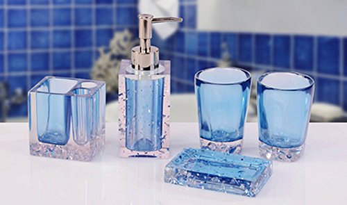 5pcs bain dish accessoires en acrylique tumbler distributeur de savon coupes et porte-brosse à dents bleu. Partagez votre expérience avec d'autres internautes.