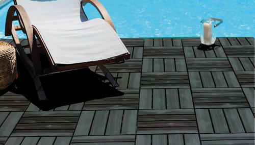 Garantie constructeur 2 ans, résistance UV 3 ans En polypropylène imitation bois. Dim. : L. 38,4 x l. 38,4 x ép. 2,5 cm. Fixation par clipsage. Résiste au chlore. Coloris noir..