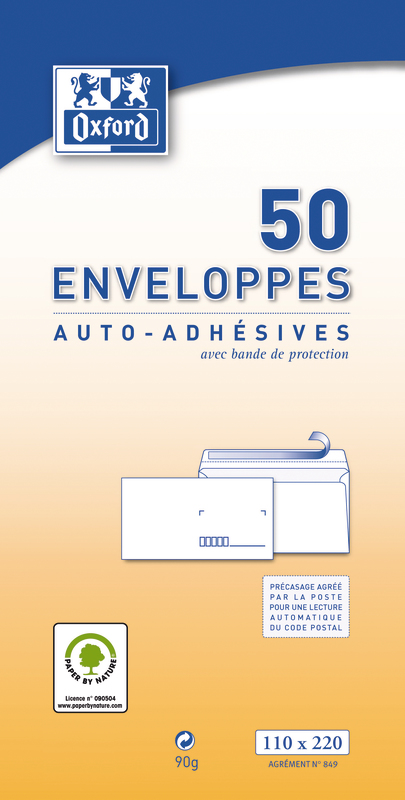 OXFORD 50 ENVELOPPES 110X220 80G AUTO-ADHESIVES PRECASEES OXFORD ? Avant d'effectuer votre achat, Zounko