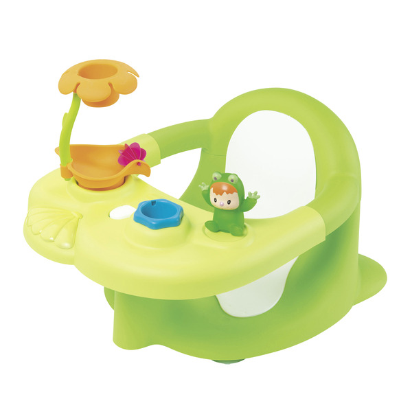 2en1 : siège de bain + tablette d'activités réglable : personnage gicleur, roue à aube, douche & gobelet. Assise en matière soft, système de déclipsage des ventouses facile. Pour surface lisse. Convient aux enfants de 6 à 13 kg.