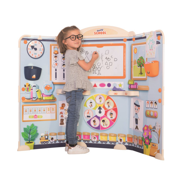 Pour recréer une journée type à l'école. Nombreux accessoires inclus. 111 cm de hauteur.