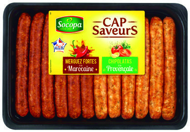 Merguez forte à la Marocaine et Chipolatas à la Provençale. Même promotion disponible sur d’autres variétés signalées en magasin.(4)