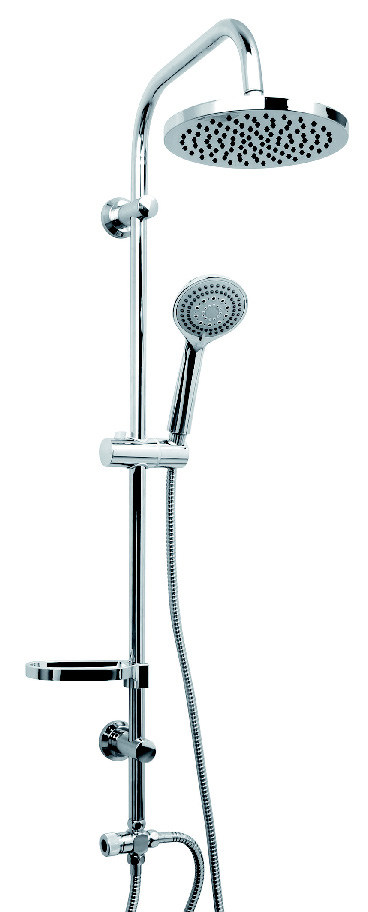 Comprend : 1 bras de douche Ø 22 mm en inox chromé avec 1 porte-savon et raccordement à la robinetterie, 1 tête de douche Ø 200 mm en ABS(3) chromé, 1 douchette 3 jets Ø 100 mm en ABS(3) chromé, anticalcaire. Flexible en inox 1,50 m. Garantie 2 ans.**