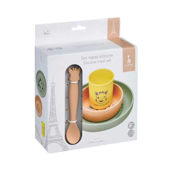 SET REPAS SILICONE PASTEL SOPHIE LA GIRAFE