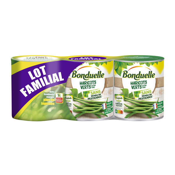 Acheter BONDUELLE Haricots verts extra fin sans résidu de pesticides "LOT FAMILIAL" , identifié par le code barre EAN 3083681128185. En vente moins cher en ligne