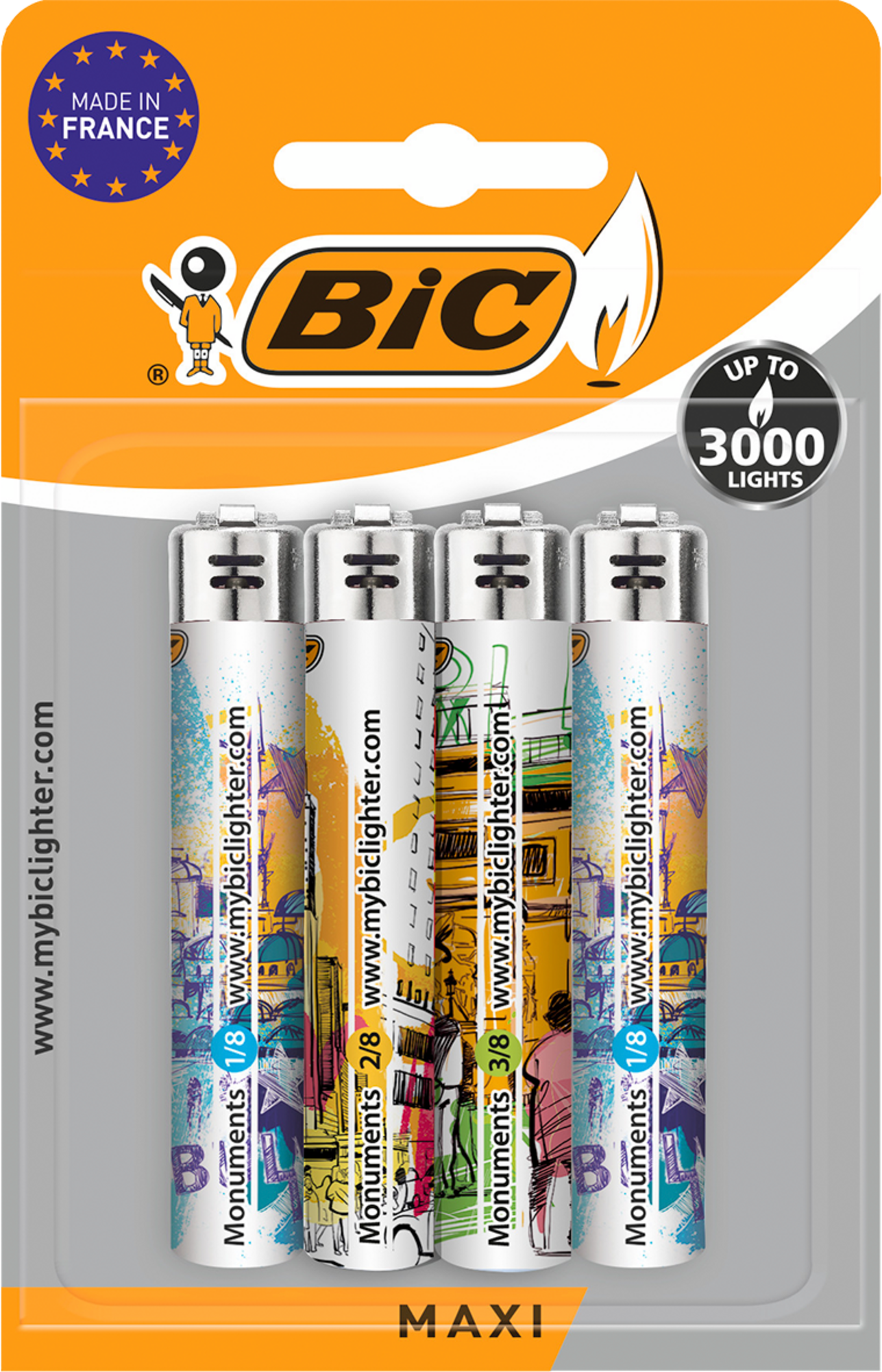 Au choix: Maxi briquets décor x4, mini briquets à pierre x3 ou briquet compact x2.