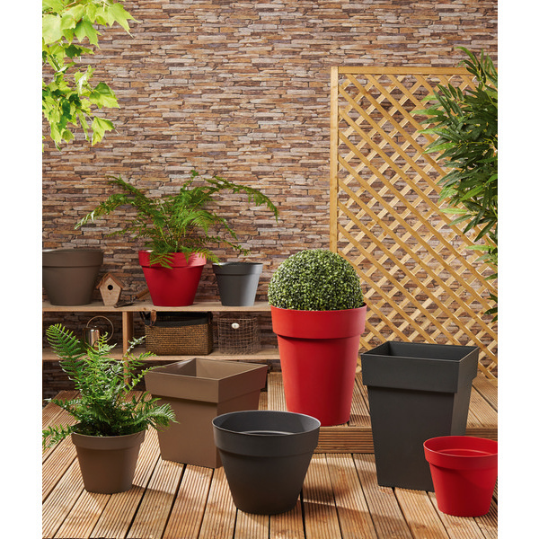 Pot toscane de fleur carré. En polypropylène. Dim. : L. 39 x l. 39 x H. 39 cm env. Contenance : 38 L env. Plusieurs coloris disponibles. Garantie constructeur 5 ans.