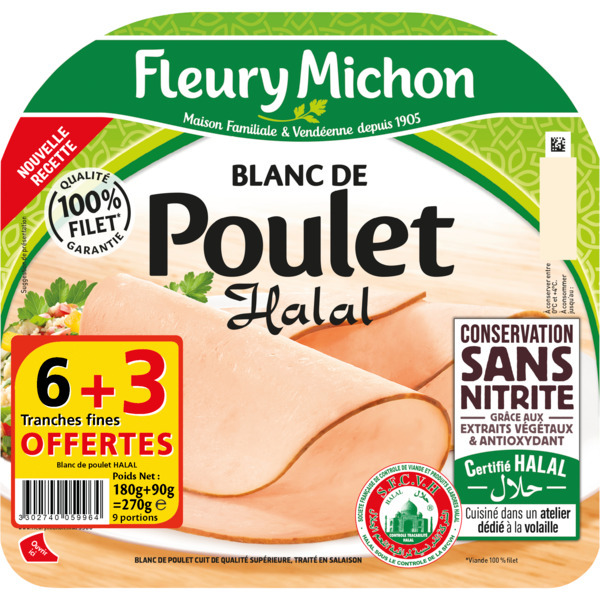 Acheter Blanc De Poulet Halal Sans Nitrite Fleury Michon , identifié par le code barre EAN 3095756598014. En vente moins cher en ligne