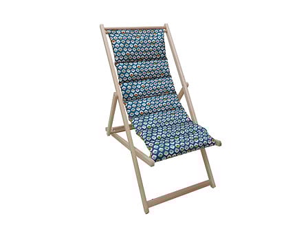 Dim. pliée : l 50 x H 116 cm. 50 % coton, 42 % polyester, 5 % viscose et 3 % autres fibres Structure en hêtre. Housse amovible, déperlante et lavable. Repose tête 3 positions. Différents décors et coloris.