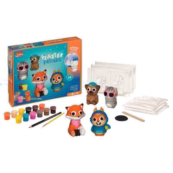 Kit complet de moulages plâtre : duos d’animaux trop craquants à réaliser et à collectionner ! Plâtre, peintures et accessoires inclus. Réf. 898759 - - Dès 5 ans.